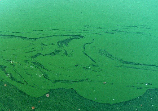 A lake of blue-green algae, 350 million years ago.